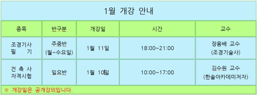 Á¦¸ñ * 1¿ù °³°­¾È³» *