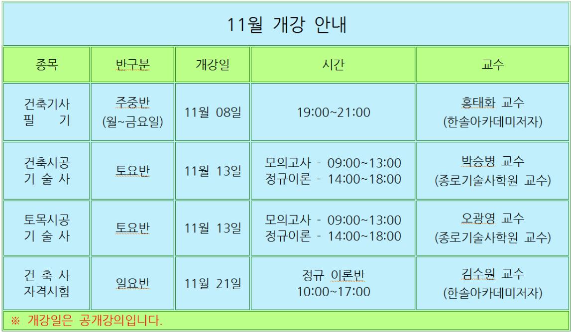 Á¦¸ñ * 11¿ù °³°­¾È³» *