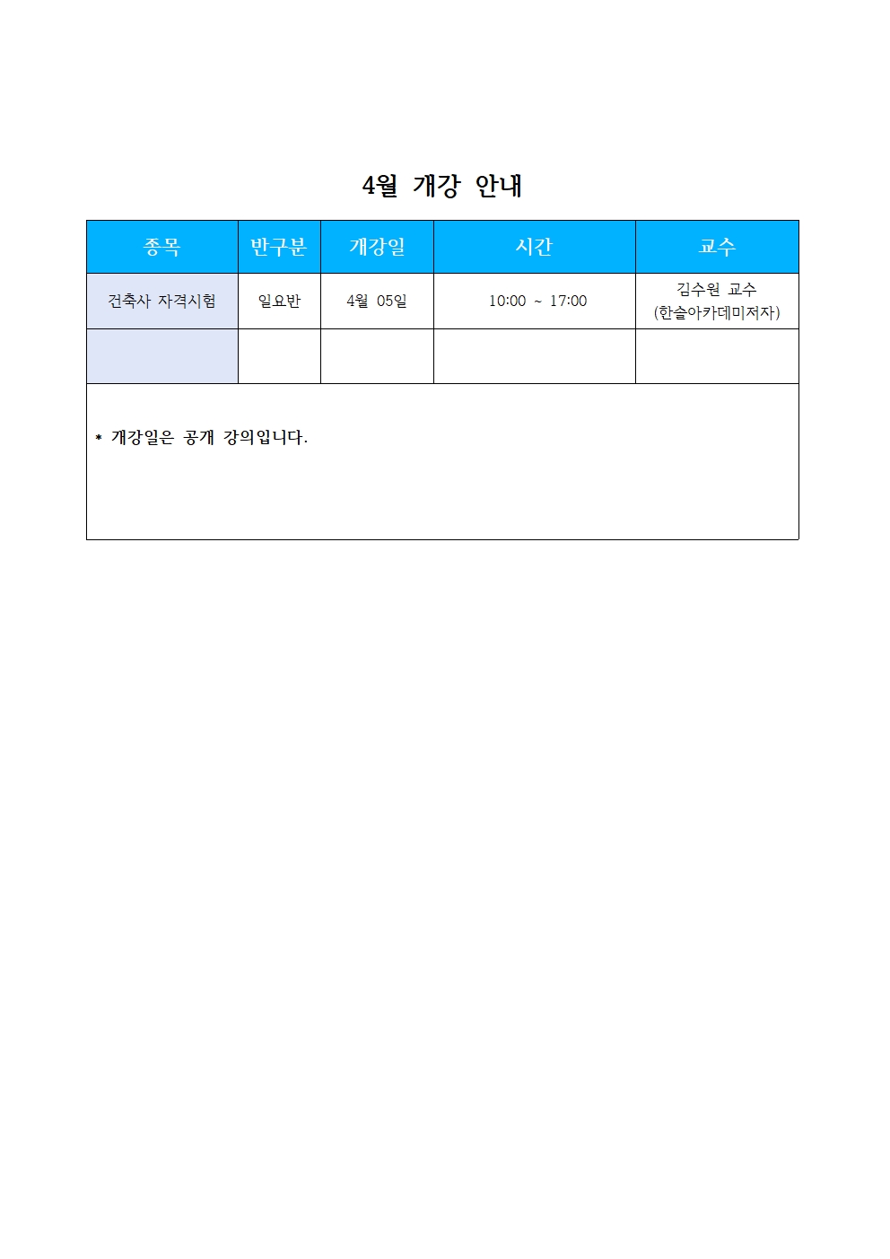 4¿ù °³° ¾È³»