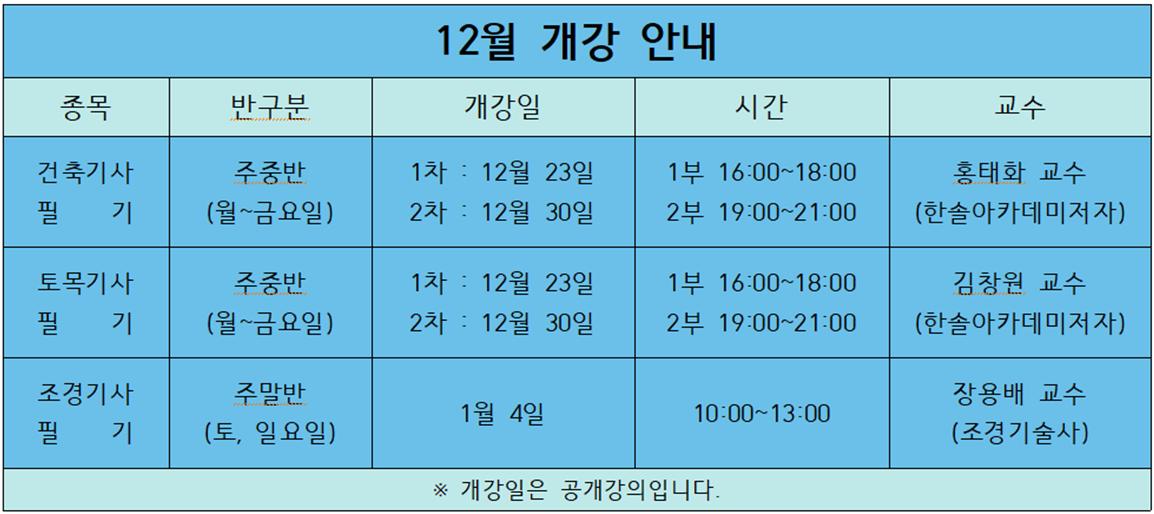 Á¦¸ñ * 12¿ù °³°­¾È³» *