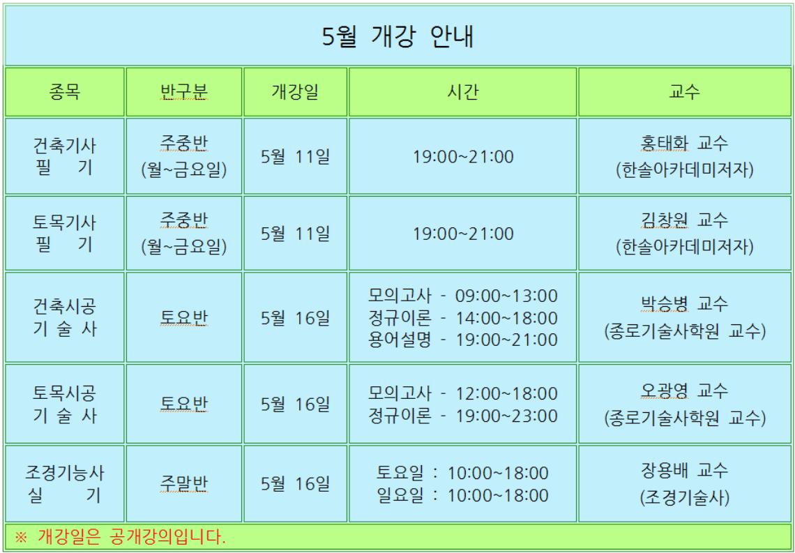 Á¦¸ñ * 5¿ù °³°­¾È³» *