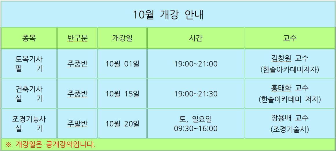 Á¦¸ñ * 10¿ù °³°­¾È³» *